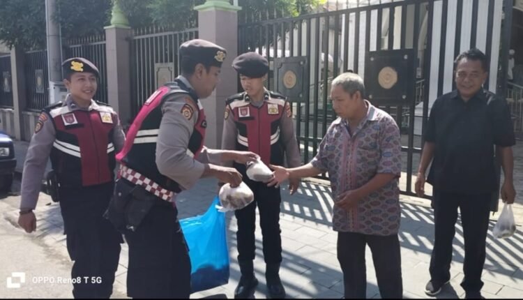 TODAYBERITA.COM – Aceh Tamiang | Polda Aceh, Sebagai wujud kepedulian serta kegiatan rutin Jumat Berkah, Polres Aceh Tamiang melalui Personel sat Samapta membagikan makanan ringan kepada warga yang beraktifitas di Kota Kuala Simpang. Jum’at (26/01/2024).