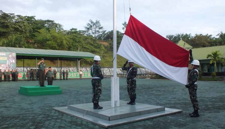 TODAY Berita.COM-Aceh Tamiang- Komando Distrik Militer (Kodim) 0117/Aceh Tamiang menggelar upacara pengibaran bendera (mingguan) bertempat di Lapangan Parikesit Jln. Lintas Medan-Banda Aceh Desa Sungai Liput, Kecamatan Kejuruan Muda, Kabupaten Aceh Tamiang. Senin (10/06/2023).