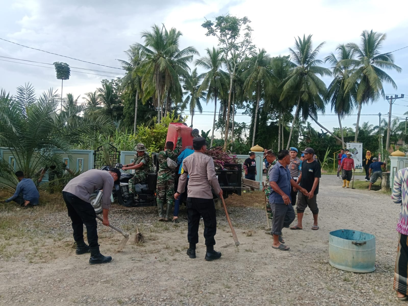 Kapolsek Seruway, AKP Tarmizi, SH, diwakili Ipda Rudianto beserta personil dan Danramil 03/Srw, Kapten Inf M. Rizal beserta anggota juga masyarakat setempat solid membersihkan fasilitas umum dan Agama demi wujudkan lingkungan bersih dan sehat.