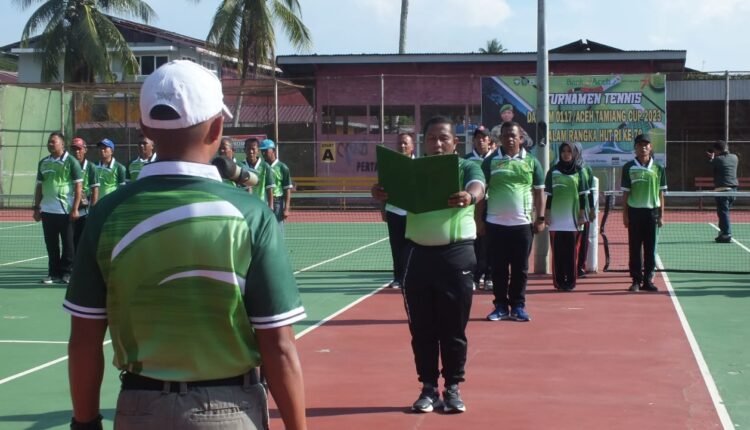 TODAYBERITA.COM | Aceh Tamiang – Dalam rangka memeriahkan HUT Kemerdekaan RI ke-78, Kodim 0117/Aceh Tamiang menggelar turnamen tenis lapangan Dandim Cup tahun 2023, Penyelenggaraan turnamen tersebut dilaksanakan selama 2hari yakni tanggal 12 dan 13 Agustus 2023 yang digelar di Lapangan Tenis PT. Pertamina Field Rantau Kecamatan Rantau Kabupaten Aceh Tamiang. Sabtu (12/08/2023).
