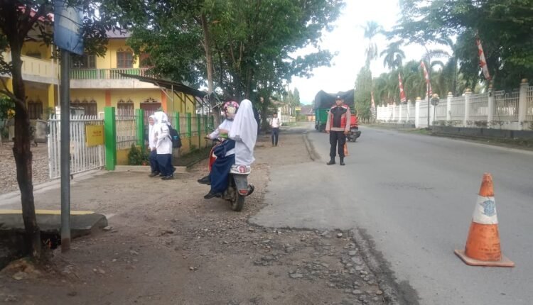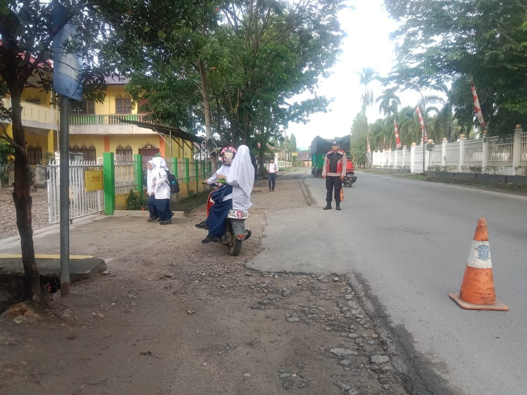 Antisipasi Kecelakaan, Personel Polsek Kuala Simpang Lakukan Gatur Lalin di Jam Masuk Anak Sekolah
