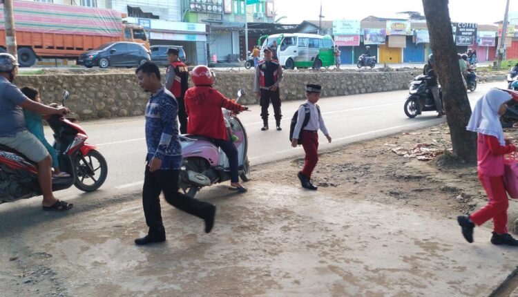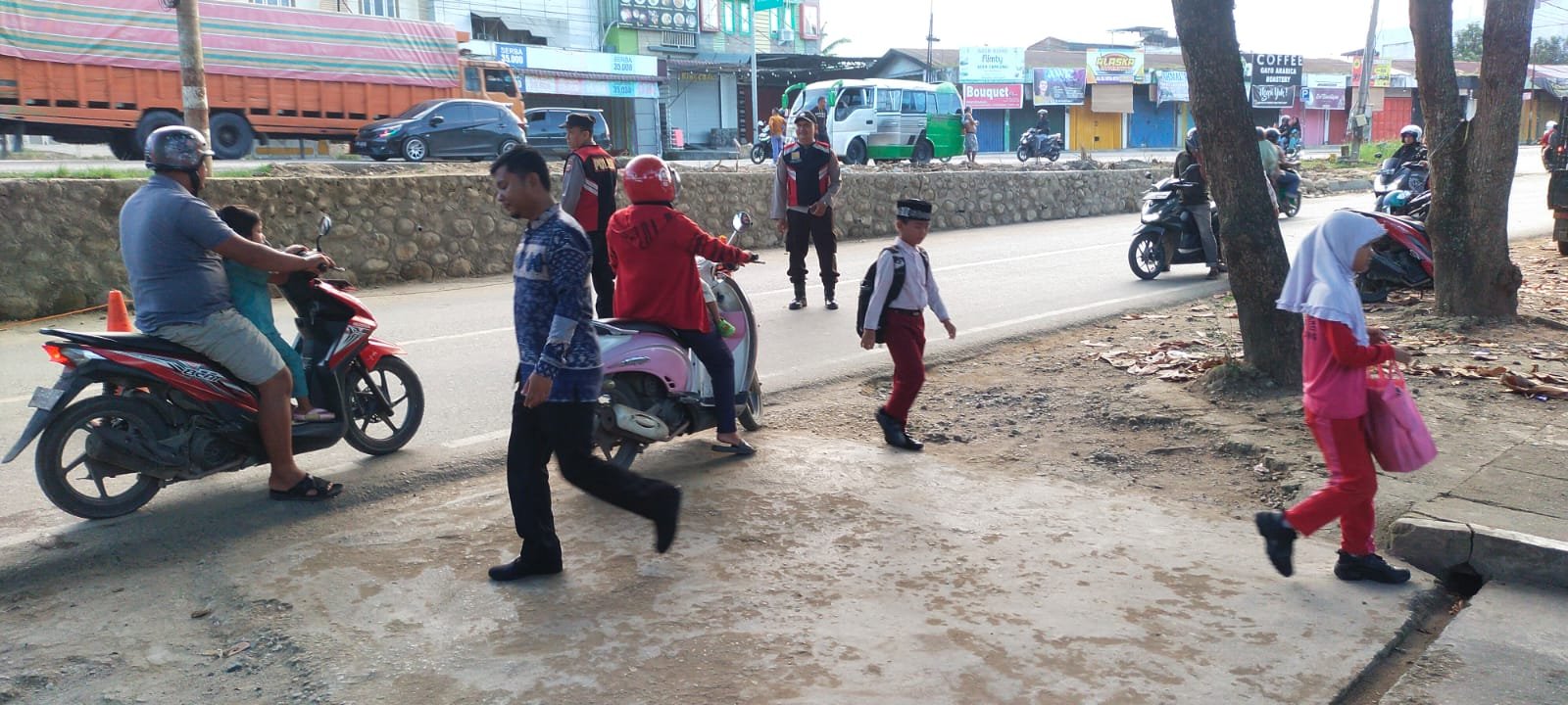 Antisipasi Kecelakaan, Personel Polsek Kuala Simpang Lakukan Gatur Lalin di Jam Masukan Anak Sekolah