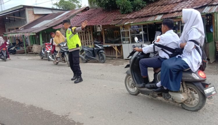 Antisipasi Kecelakaan, Personel Polsek Tamiang Hulu Lakukan Gatur Lalin di Jam Masukan Anak Sekolah