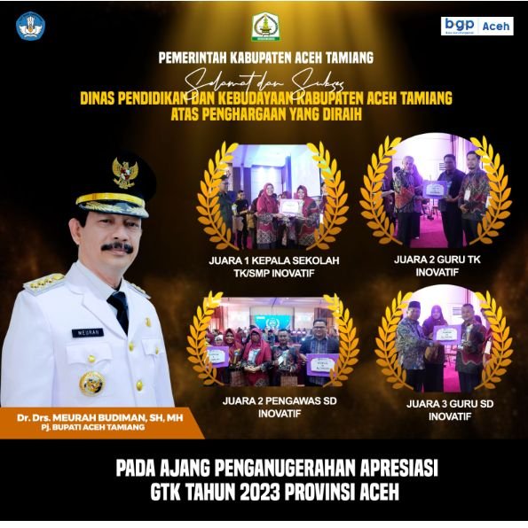TODAYBERITA.COM| Aceh Tamiang – Selasa (7/11/23), Pj. Bupati, Dr. Drs. Meurah Budiman, SH, MH, mengapresiasi capaian guru dan tenaga kependidikan Kabupaten Aceh Tamiang di ajang Apresiasi Guru & Tenaga Kependidikan tingkat Aceh Tahun 2023 yang digelar Ahad (5/11) kemarin, di Banda Aceh.