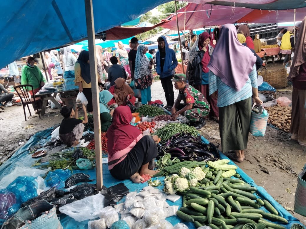 TODAYBERITA.COM-|ACEH TAMIANG, Koptu Joko suherman Babinsa Koramil 07/Kejuruan Muda melaksanakan pengecekan ketersediaan harga sembako secara langsung di pasar tradisional Desa Sungai Liput, Kecamatan Kejuruan Muda, Kabupaten Aceh Tamiang. Minggu (16/07/2023).