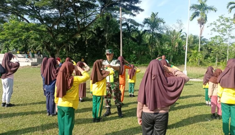 Babinsa Latih Siswa SD Negeri 1 Sungai Liput Peraturan Baris Berbaris
