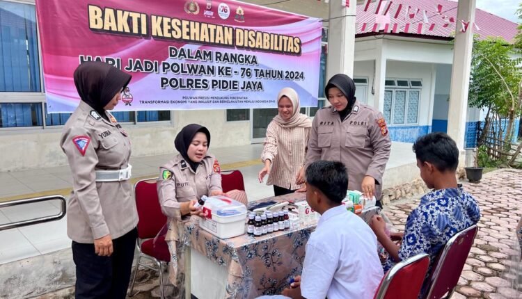 TODAYBERITA.COM | Pidie Jaya – Dalam rangka menyambut Hari Jadi ke-76 Polisi Wanita (Polwan) yang jatuh pada 1 September 2024, Polwan Polres Pidie Jaya menggelar kegiatan Bakti Kesehatan Disabilitas pada Selasa, 20 Agustus 2024.