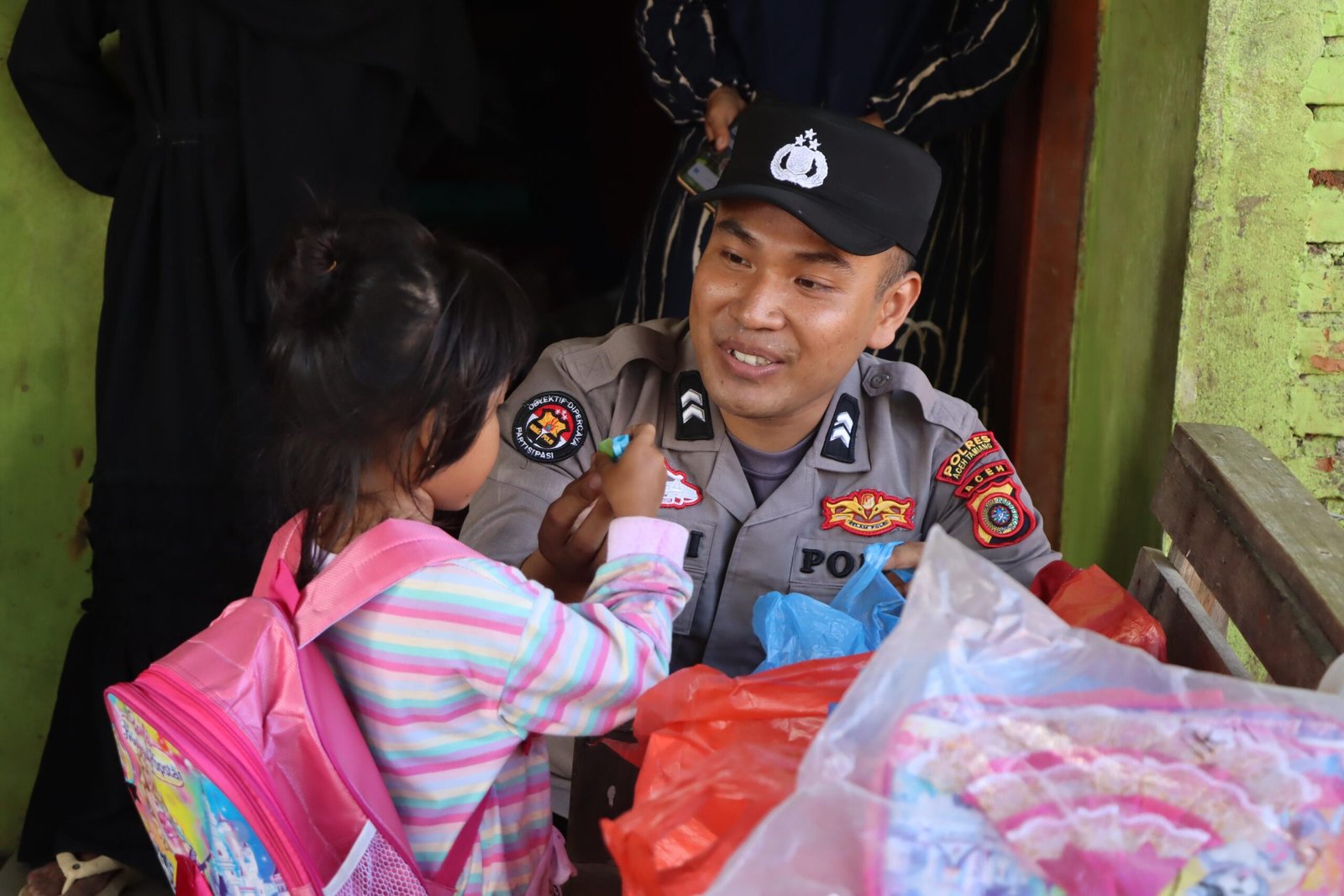 Bentuk Kepedulian Kepada Korban Banjir Seruway, Briptu Rizki Salurkan Bantuan dan Donasi Dari Sahabat Polri