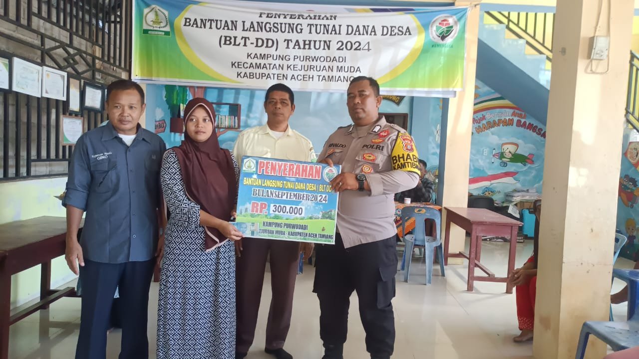 Kegiatan tersebut dihadiri oleh, Kapolsek Kejuruan Muda diwakili Bhabinkamtibmas Desa Purwodadi, Datok Penghulu, Babinsa, Pendamping Lokal Desa, Ketua MDSK, serta Para Penerima BLT-DD.**(R)