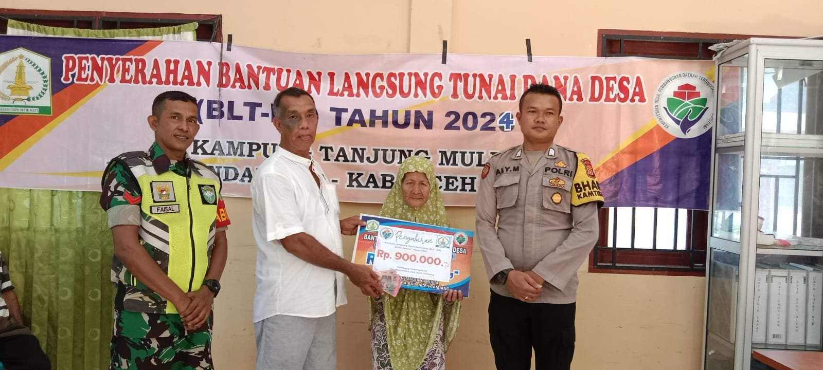 TODAYBERITA.COM | Aceh Tamiang – Polda Aceh, Bhabinkamtibmas Desa Tanjung Mulia Polsek Bendahara melaksanakan Monitoring Penyaluran Bantuan Langsung Tunai (BLT) bersumber dari Dana Desa (DD) Tahun Anggaran 2024 di Kantor Datok Penghulu Desa Tanjung Mulia Kecamatan bendahara Kabupaten Aceh Tamiang. Jum’at (19/04/2024).