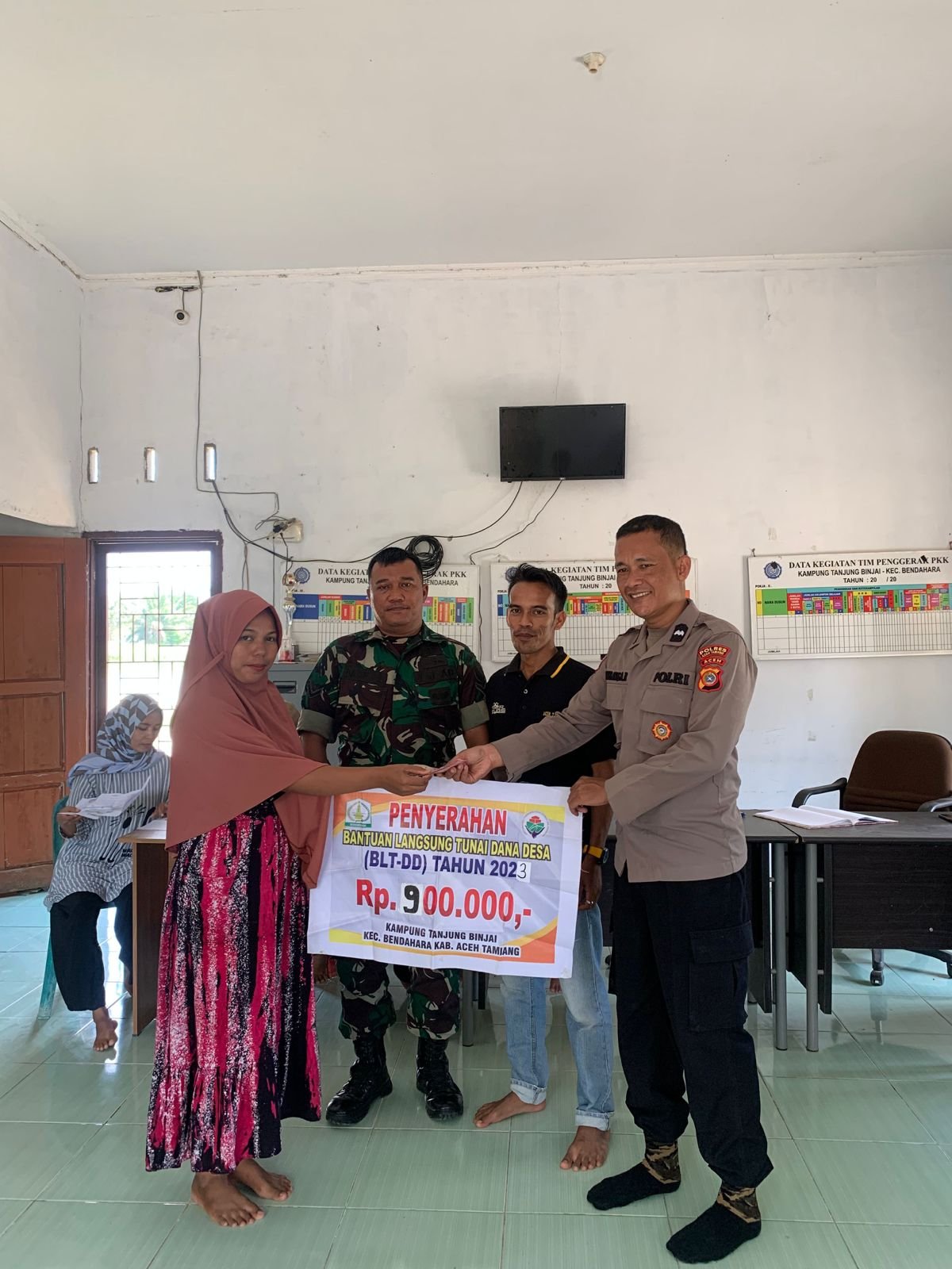 TODAYBERITA.COM – Aceh Tamiang | Bhabinkamtibmas Polsek bendahara Aipda Bambang Ardiansyah laksanakan Monitoring menyaluran Bantuan Langsung Tunai (BLT) bersumber dari Dana Desa (DD) Tahun Anggaran 2023.