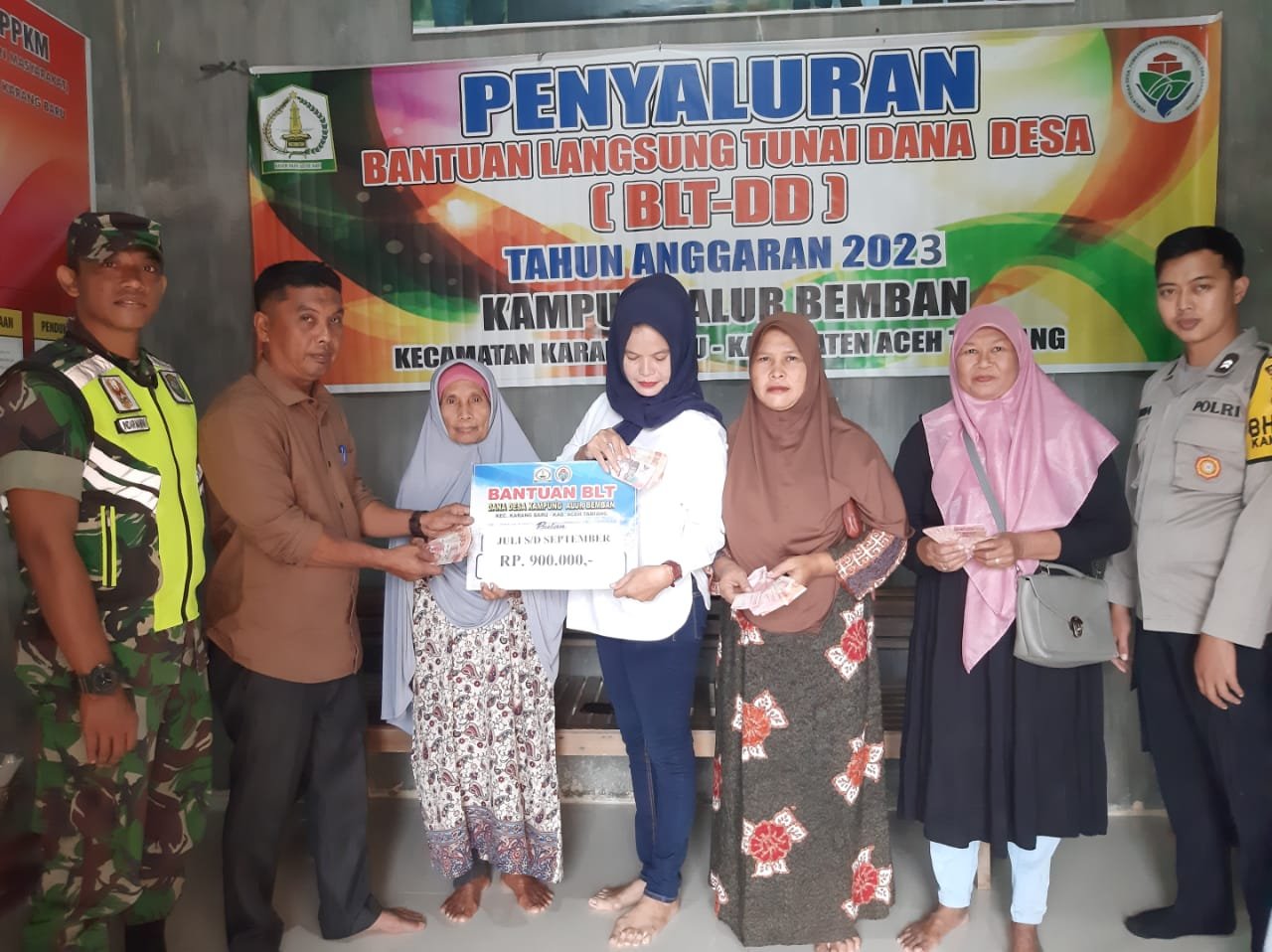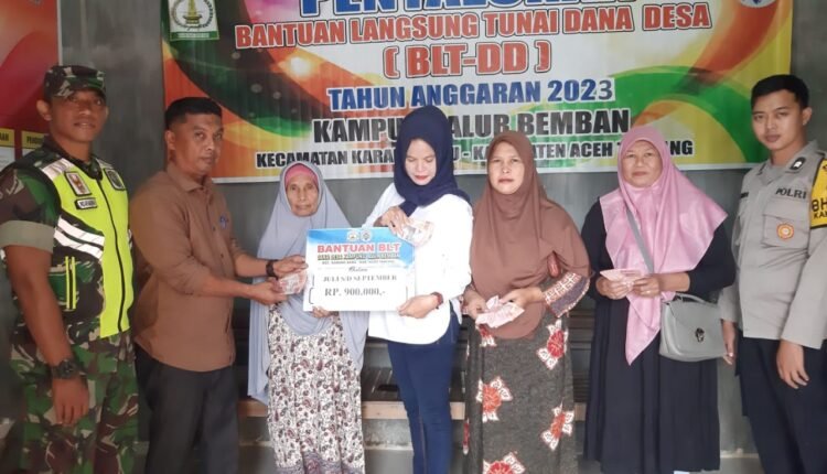 TODAYBERITA.COM| Aceh Tamiang – Polres Aceh Tamiang, Bhabinkamtibmas Polsek Karang Baru Briptu Eka Infra Satria melaksanakan Monitoring menyaluran Bantuan Langsung Tunai (BLT) bersumber dari Dana Desa (DD) Tahun Anggaran 2023 di Kantor Datok Penghulu Desa Alur Bemban Kecamatan Karang Baru Kabupaten Aceh Tamiang. Senin (04/09).