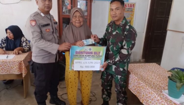 Bhabinkamtibmas Polsek Karang Baru Pantau Penyaluran Bantuan Langsung Tunai (BLT) Di Desa Tupah.