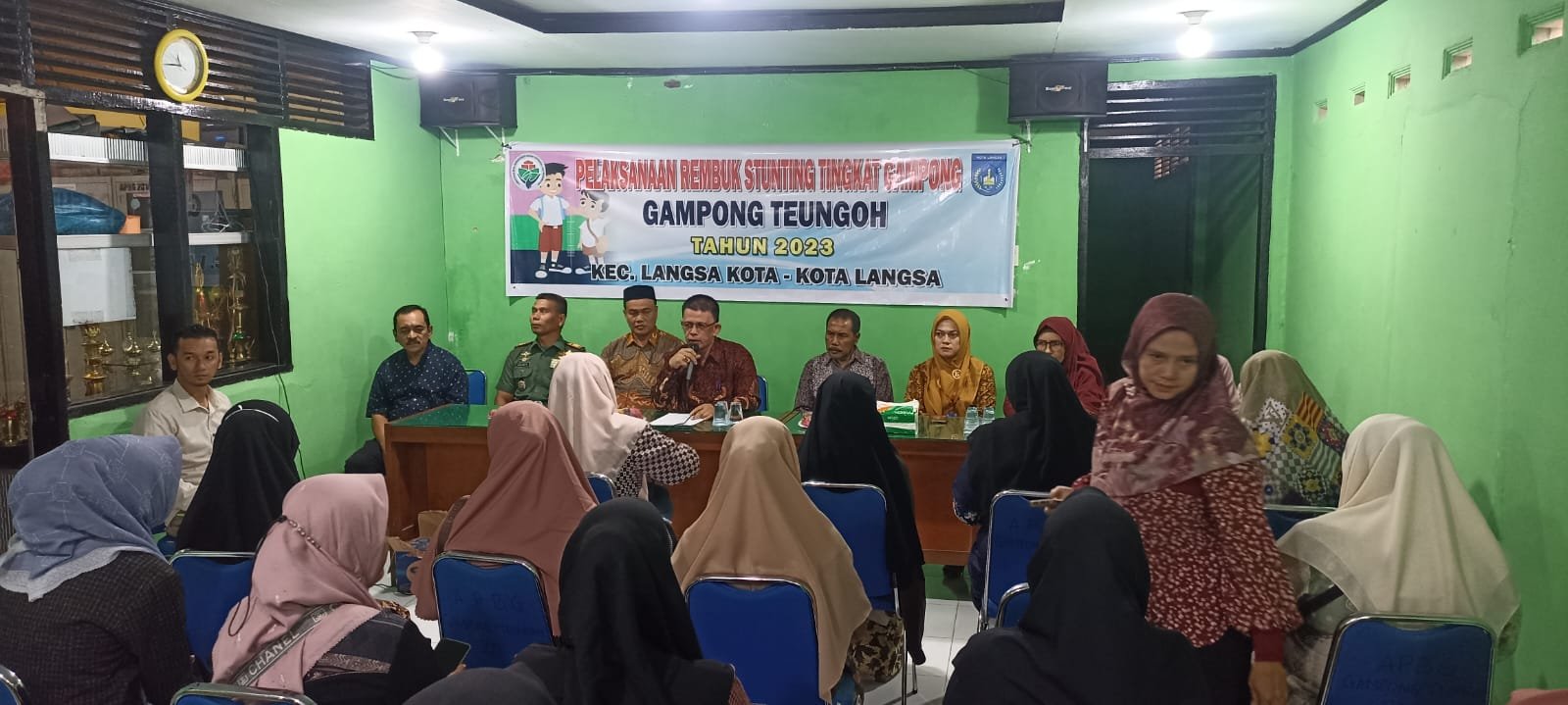 Bhabinkamtibmas Polsek Langsa AIPDA Ari Samarta menghadiri kegiatan rapat pelaksanaan rembuk Stunting tingkat Gampong Teungoh tahun 2023 kec.