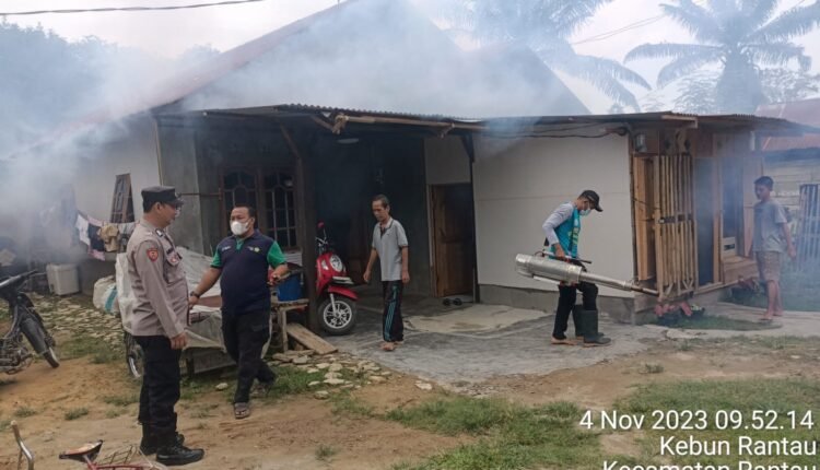 Bhabinkamtibmas Polsek Rantau Bersama Puskesmas Laksanakan Fogging