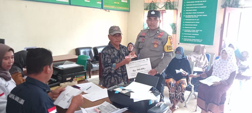 TODAYBERITA.COM| Aceh Tamiang -Bhabinkamtibmas Polsek Rantau Polres Aceh Tamiang Briptu Agung Satya Wiranda melaksanakan Monitoring Penyaluran Bantuan Langsung Tunai (BLT) bersumber dari Dana Desa (DD) Tahun Anggaran 2023 di Kantor Datok Penghulu Desa Jamur Labu Kecamatan Rantau Kabupaten Aceh Tamiang. rabu (06/09).