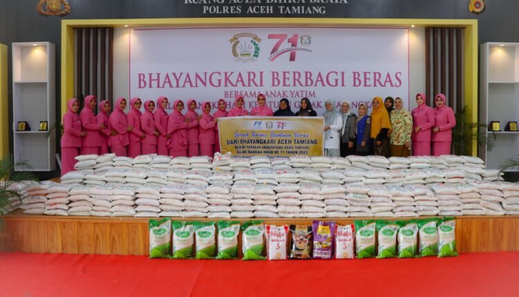 TODAYBERITA.COM| Aceh Tamiang- Ketua Bhayangkari Cabang Aceh Tamiang Ny. Dewi Yanis didamping Wakil Ketua Bhayangkari Cabang Aceh Tamiang Ny. Atik Ichsan Menyerahkan Bantuan Sosial Kepada Yayasan Abulyatama Aceh Tamiang Dalam Rangka Hari Kesatuan Gerak Bhayangkari (HKGB) Ke-71 Tahun 2023. Senin (28/08).