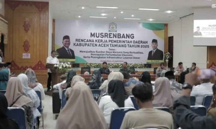 TODAYBERITA.COM | Aceh Tamiang – : Pj. Bupati Aceh Tamiang, Drs. Asra, meminta forum musyawarah agar cerdas dan cermat susun program prioritas. Ini ditegaskannya saat secara resmi membuka acara Musyawarah Rencana Pembangunan (Musrenbang) Rencana Kerja Pemerintah Daerah (RKPD) Kabupaten Aceh Tamiang Tahun 2025, Rabu (3/4/24), di aula Setdakab setempat.