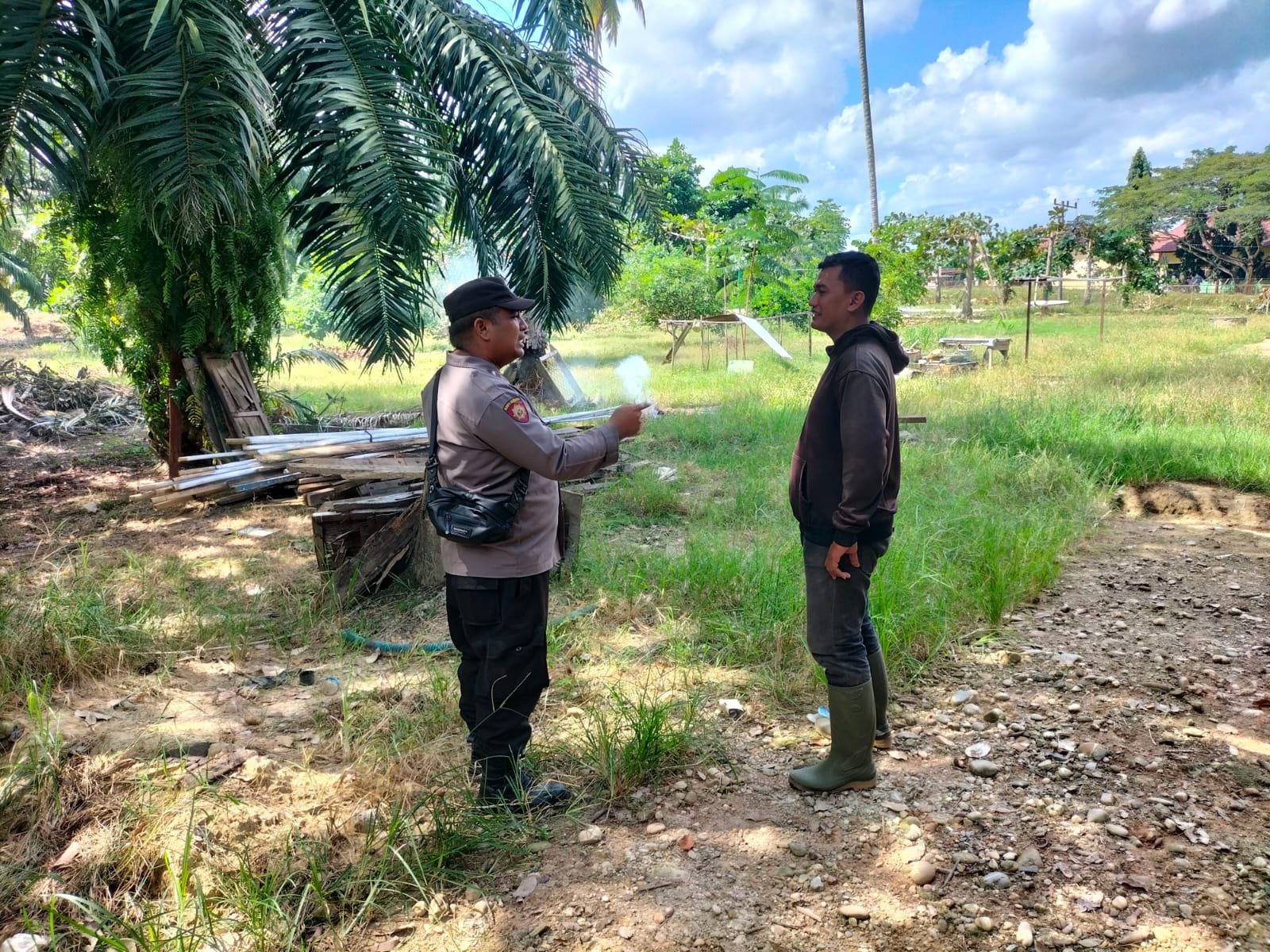 TODAYBERITA.COM| Aceh Tamiang – Polres Aceh Tamiang, Personil Polsek Bendahara melakukan Patroli sekaligus menyampaikan sosialisasi bahayanya melakukan pembakaran dalam rangka pencegahan dan himbauan terkait kebakaran hutan dan lahan (Karhutla). Kamis (26/10/2023).
