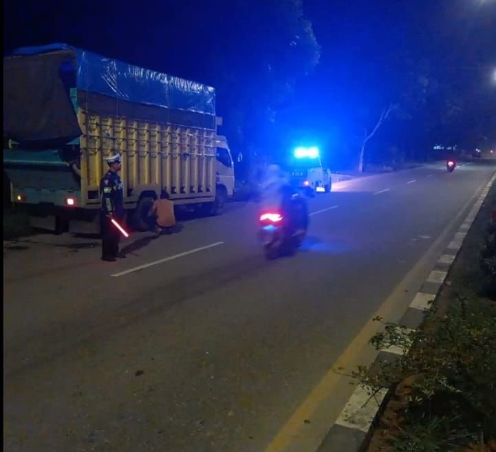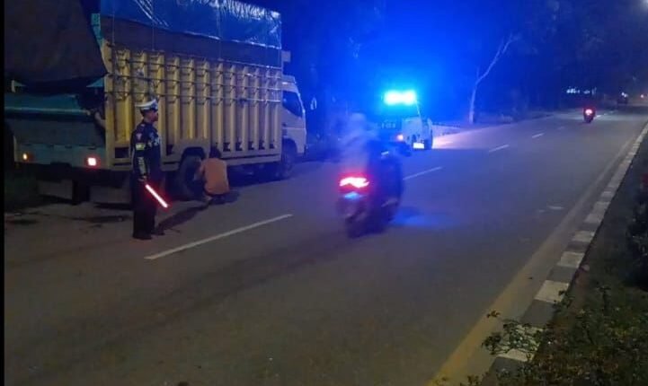 Cegah Kecelakaan, Satlantas Polres Aceh Tamiang Berikan Teguran Kepada Para Supir Truck Yang Parkir di Badan Jalan