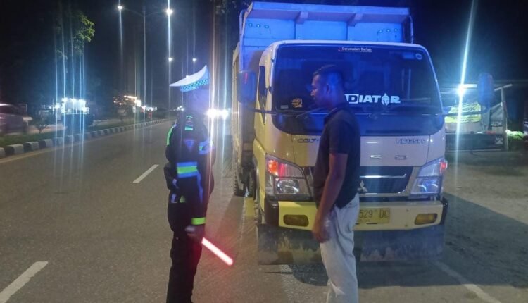 Cegah Kecelakaan, Satlantas Polres Aceh Tamiang Berikan Teguran Kepada Para Supir Truck Yang Parkir di Badan Jalan