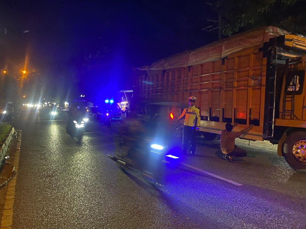 Cegah Kecelakaan, Satlantas Polres Aceh Tamiang Berikan Teguran Kepada Para Supir Truck Yang Parkir di Badan Jalan