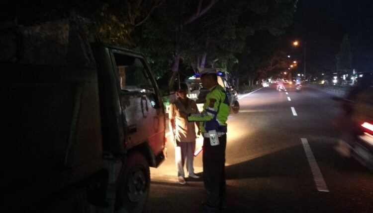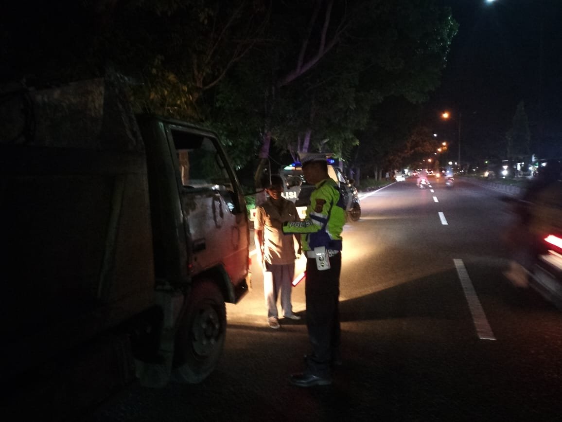 Cegah Kecelakaan, Satlantas Polres Aceh Tamiang Berikan Teguran Kepada Para Supir Truck Yang Parkir Sembarangan
