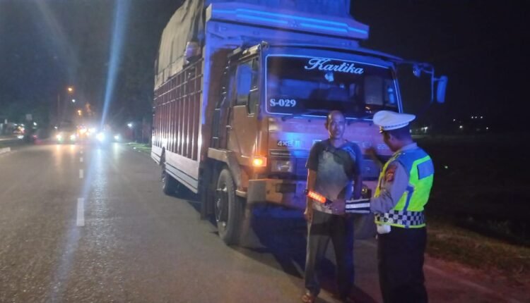 Cegah Kecelakaan, Satlantas Polres Aceh Tamiang Berikan Teguran Kepada Para Supir Truck Yang Parkir Sembarangan