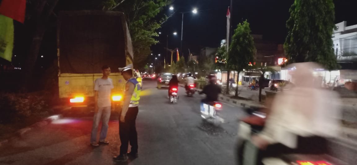 Cegah Kecelakaan, Satlantas Polres Aceh Tamiang Berikan Teguran Kepada Para Supir Truck Yang Parkir Sembarangan