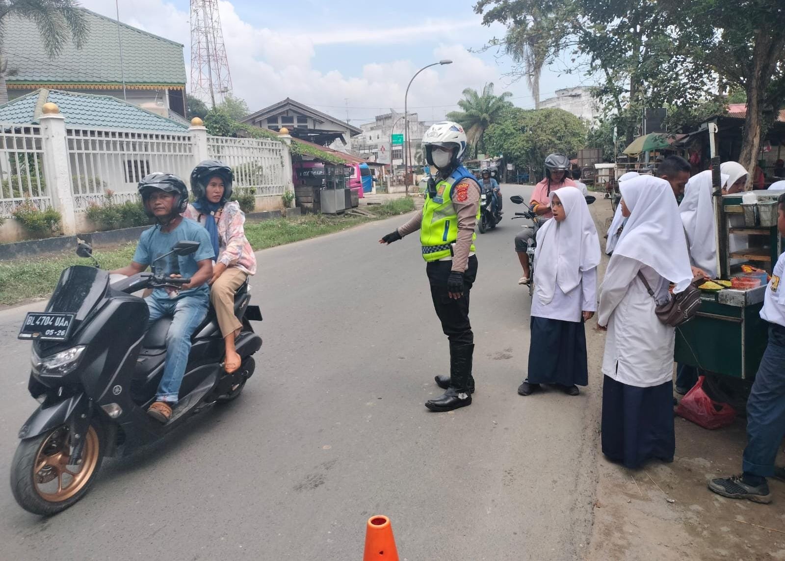 Cegah Kecelakaan terhadap anak Sekolah, Satlantas Polres Aceh Tamiang Rutin Laksanakan Gatur Pada Zona Aman Sekolah