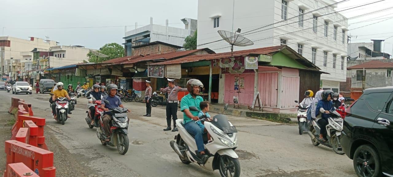 Cegah Kemacetan dan Kecelakaan Pada jam Masukan Kantor dan Masuk Sekolah, Sat Lantas Polres Aceh Tamiang Rutin Melaksanakan Strong Point