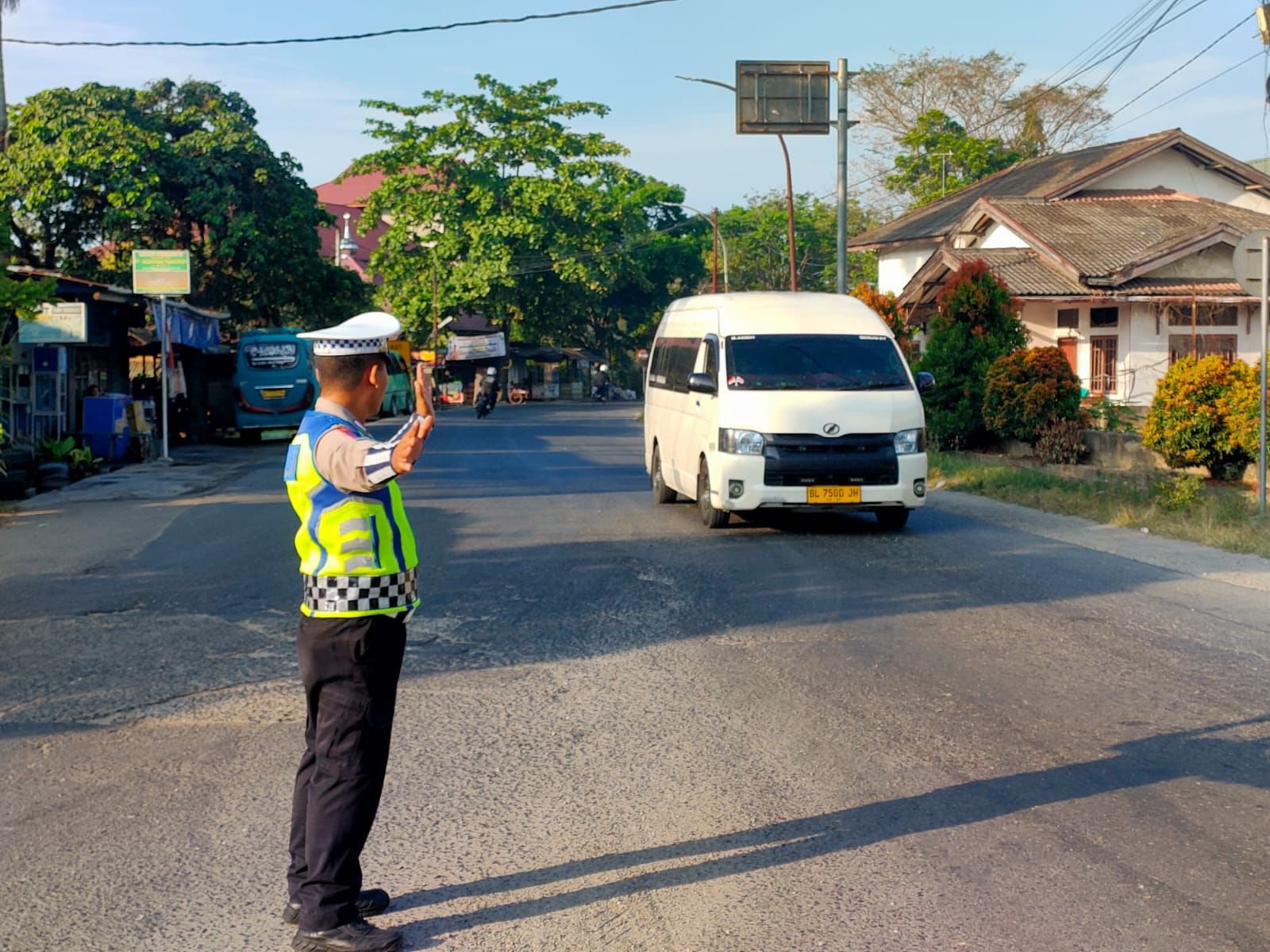 Cegah Kemacetan dan Kecelakaan, Sat Lantas Polres Aceh Tamiang Rutin Melaksanakan Strong Point Pagi