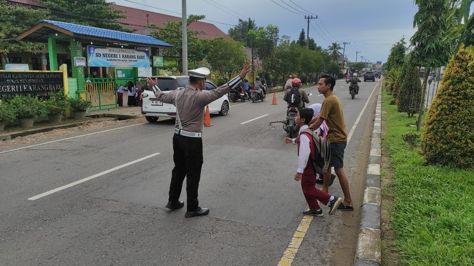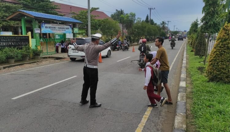 ACEH TAMIANG – TODAYBERITA.COM | Polda Aceh,Personel Unit Turjawali Satlantas Polres Aceh Tamiang Polda Aceh Jajaran Polda Aceh melaksanakan kegiatan pengaturan lalu lintas (Gatur Lalin) pada zona aman Sekolah.