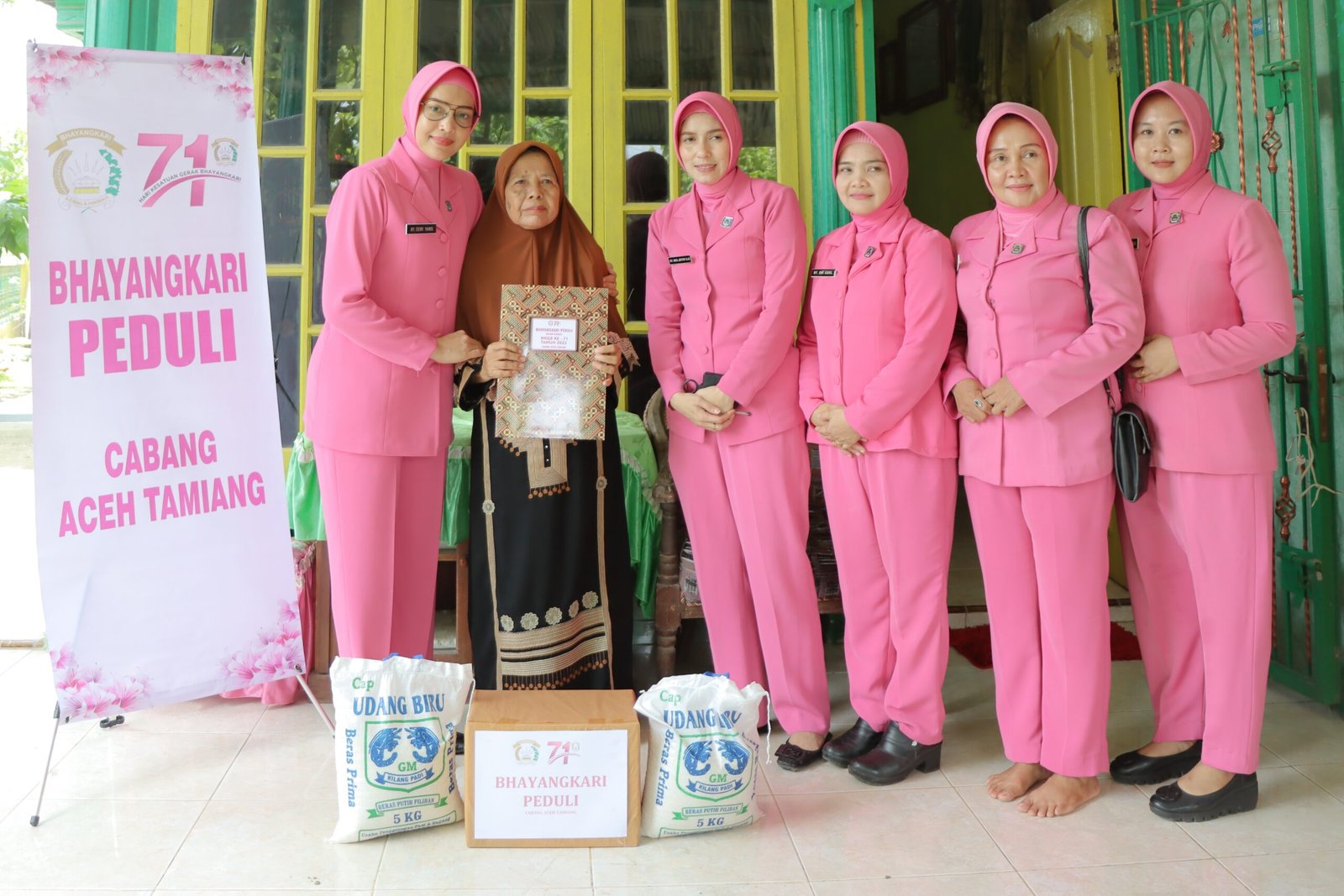 TODAYBERITA| Aceh Tamiang – Dalam rangka menyambut Hari Kesatuan Gerak Bhayangkari (HKGB) ke-71, Ketua Bhayangkari Cabang Aceh Tamiang Ny. Dewi Yanis bersama dengan pengurus Bhayangkari Cabang Aceh Tamiang melaksanakan kegiatan anjangsana dan bakti sosial. Selasa (15/08/23)