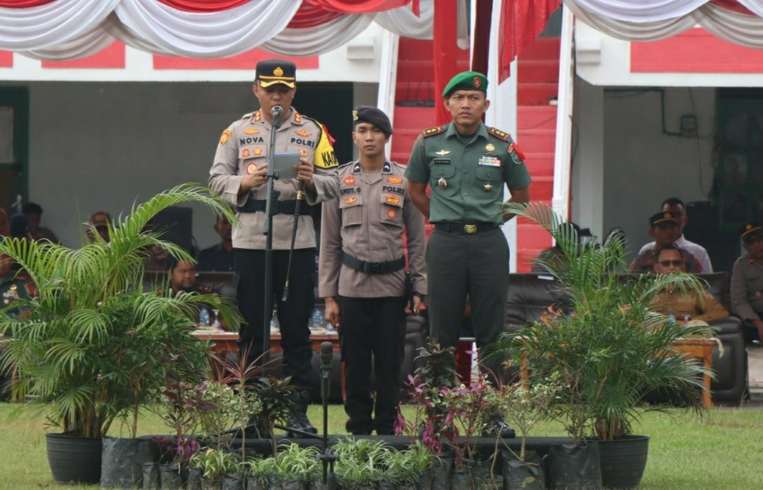 Apel gelar pasukan dipimpin langsung Kapolres Aceh Selatan, AKBP Nova Suryandaru SIK., bersama Dandim 0107/Asel Letkol Inf Faiq Fahmi.