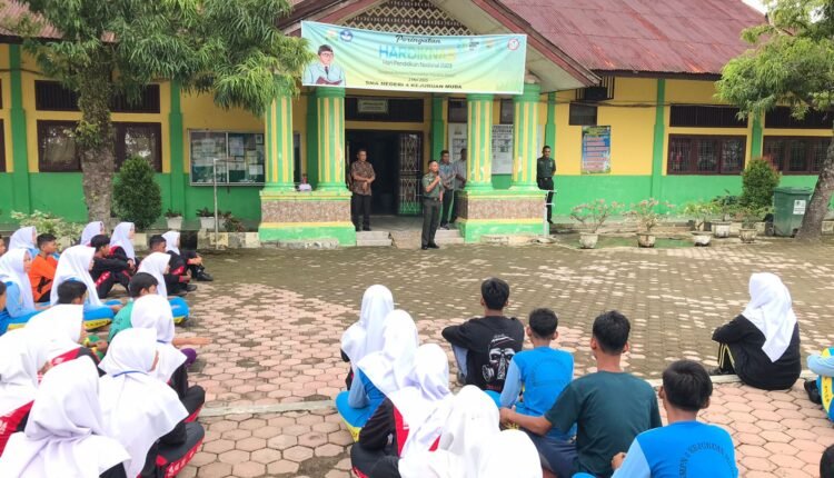 TODAYBERITA.COM-|ACEH TAMIANG, Komandan Kodim (Dandim) 0117/Aceh Tamiang Letkol CZI Alfian Rachmad Purnamasidi, S.I.P. M,si., memberikan pembekalan wawasan kebangsaan (wasbang) kepada siswa/siswi Baru bertempat di SMA Negeri 4 Kejuruan Muda Desa Sungai Liput, Kecamatan Kejuruan Muda, Kabupaten Aceh Tamiang. Kamis (20/07/2023).