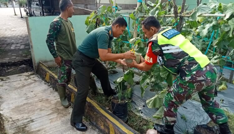 Danramil 02/Karang Baru Bersama Anggota Panen Perdana Tanaman Melon Pemanfaatan Halaman Koramil