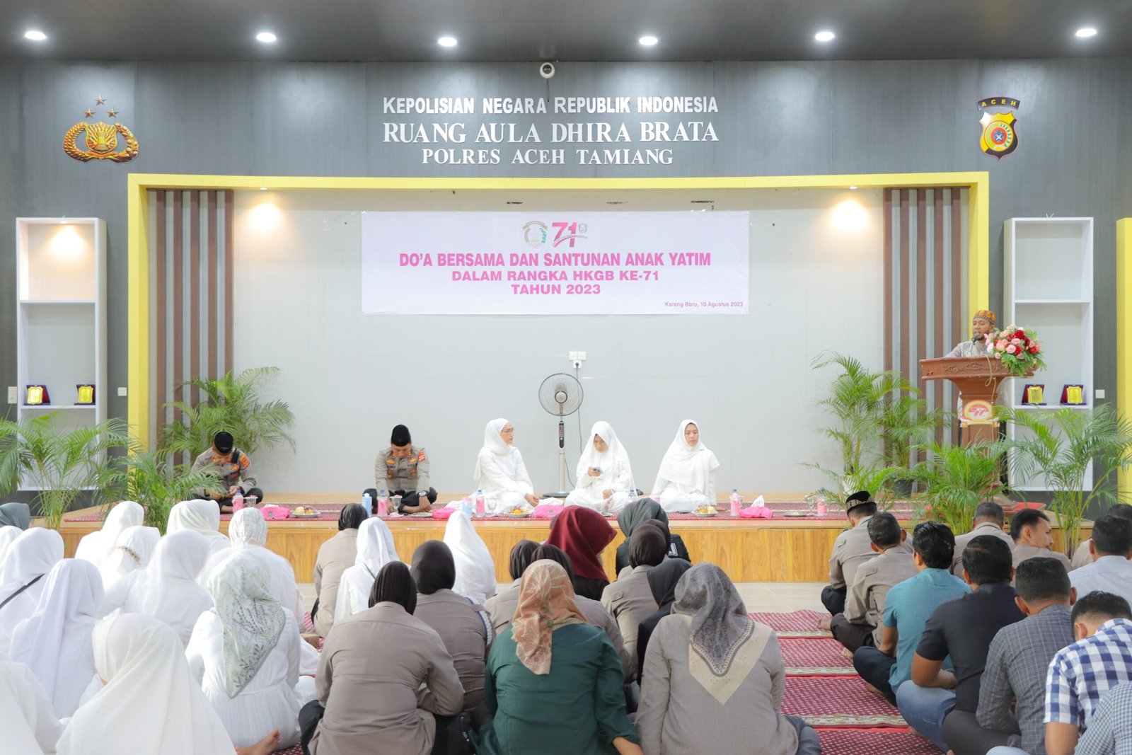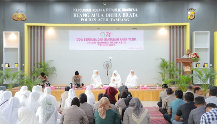 TODAYBERITA.COM | Aceh Tamiang – Dalam rangka memperingati Hari Kesatuan Gerak Bhayangkari (HKGB) ke- 71 tahun 2023, Pengurus Bhayangkari Cabang Aceh Tamiang mengadakan Doa bersama dan Santunan Anak Yatim di Aula Dhira Brata Mapolres Aceh Tamiang, Kamis (10/8).