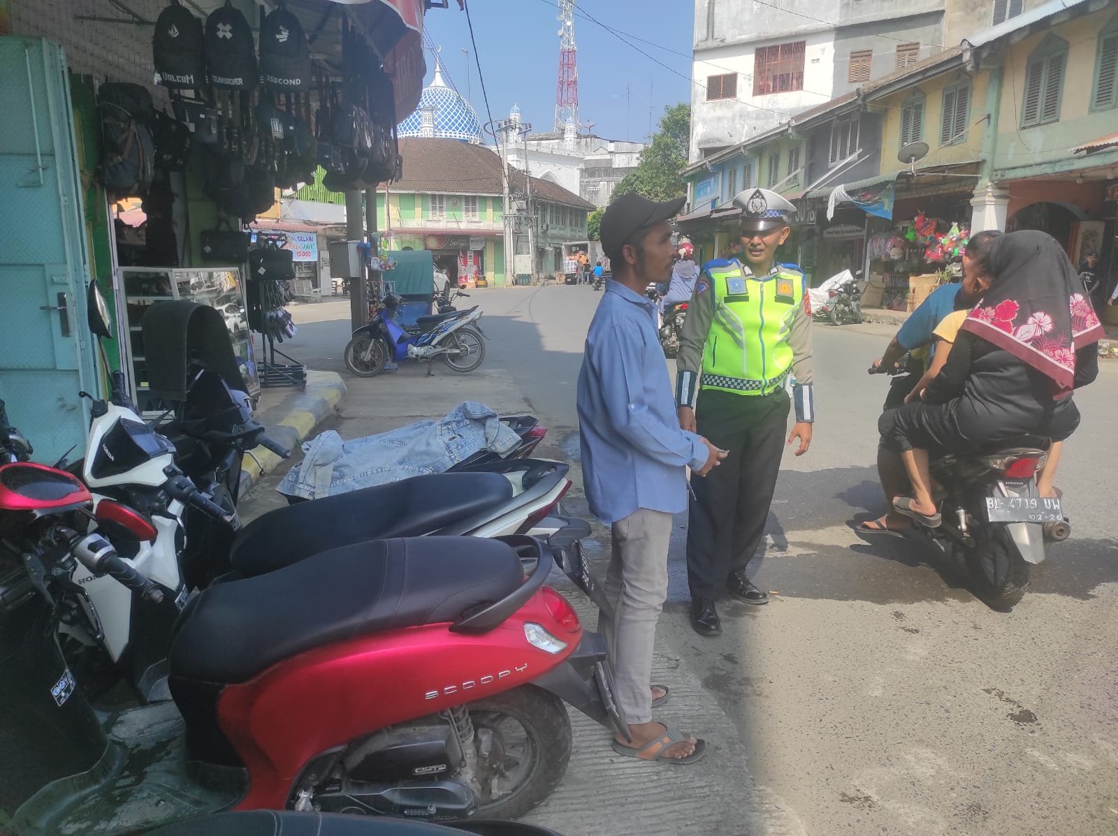 Dua Orang Personel Sat Lantas Polres Aceh Tamiang Laksanakan Sosialisasi dan Membagikan Buku Petunjuk Keselamatan