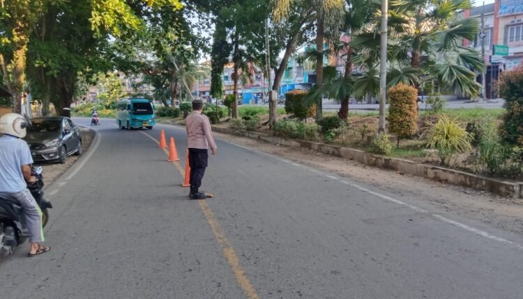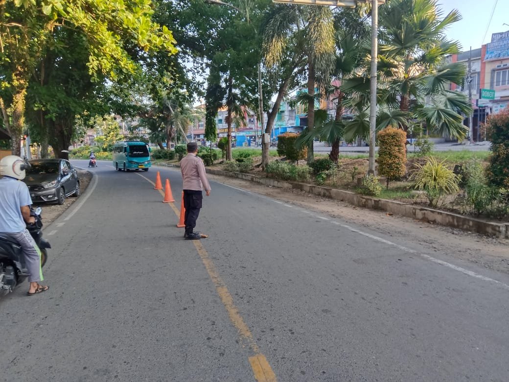 Personel Polsek Kuala Simpang Polres Aceh Tamiang Jajaran Polda Aceh terus memberikan Pelayanan Prima Kepolisian kepada masyarakat salah satu diantaranya dengan melaksanakan kegiatan Strong Point dan Pengaturan Arus Lalu Lintas.