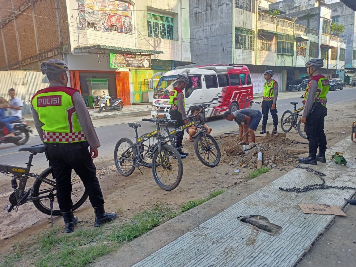 Guna Ciptakan Harkamtibmas, Sat Samapta Polres Aceh Tamiang Laksanakan Patroli Sepeda Rutin