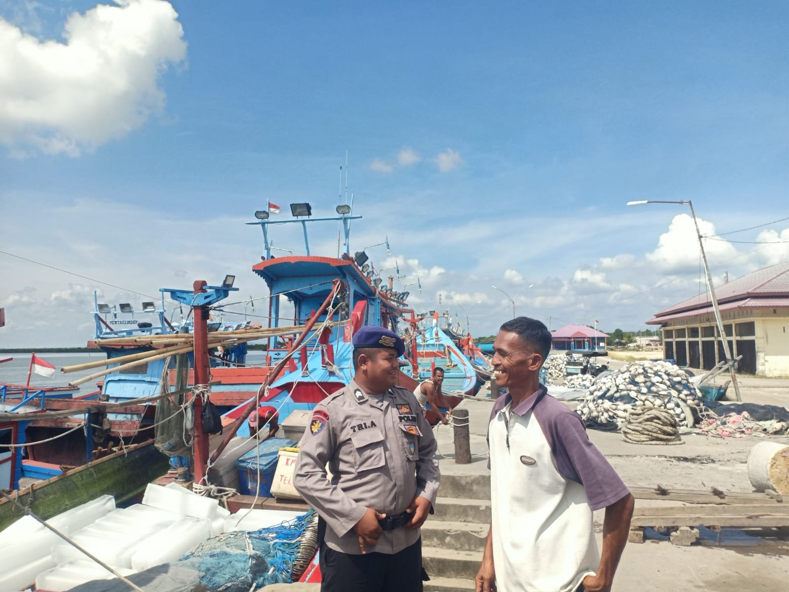 TODAYBERITA.COM | Langsa – Anggota jaga, Sat Pol Airud, Polres Langsa melaksanakan giat patroli dialogis di seputaran Dermaga pelabuhan TPI Kuala Langsa, guna menyampaikan kepada masyarakat Buruh bongkar Muat serta Nelayan yang beraktifitas di laut dan didarat