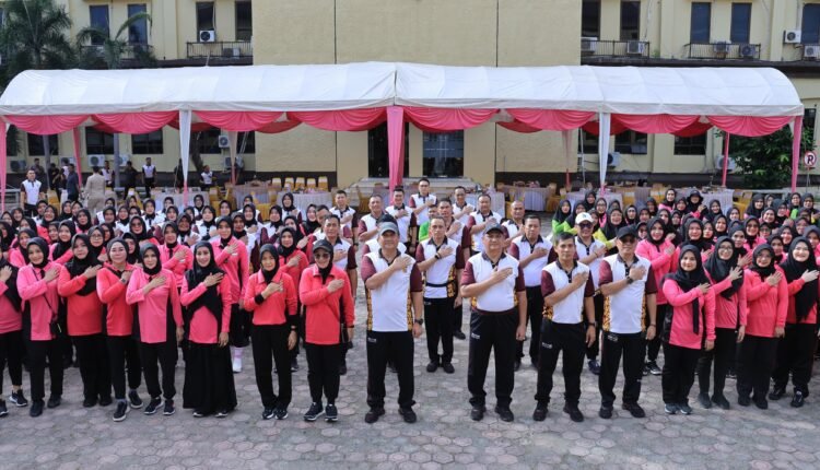 TODAYBERITA.COM | Banda Aceh — Pengurus Yayasan Kemala Bhayangkari (YKB) Polda Aceh menggelar olahraga bersama dalam rangka hari ulang tahun (HUT) ke-44. Kegiatan itu dilaksanakan di lapangan tengah Mapolda Aceh, Jumat, 19 April 2024.