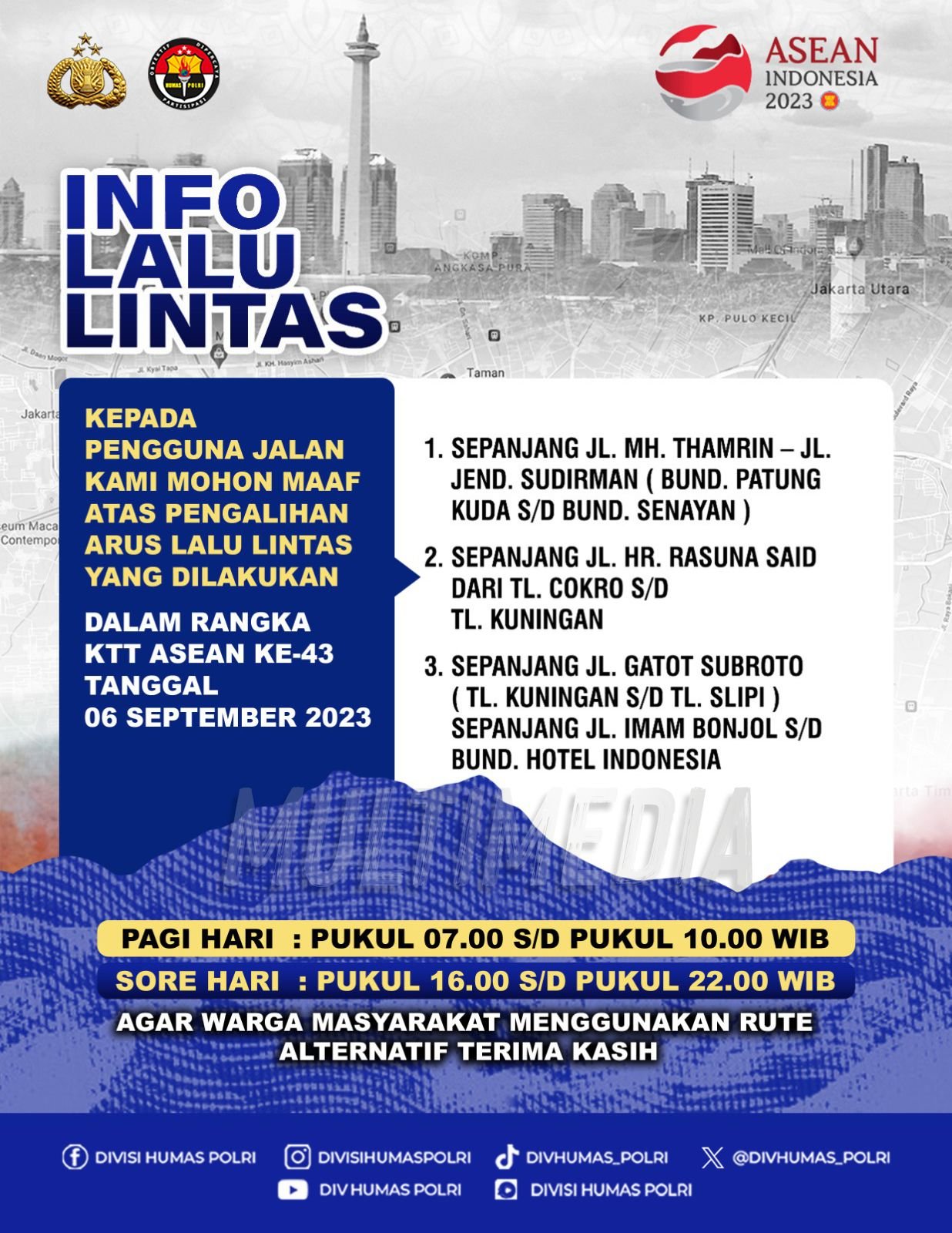 TNI-POLRI Info lalu lintas By Ade Laressa On Sep 6, 2023 0 Share 0 Share FacebookTwitterGoogle+WhatsAppEmail