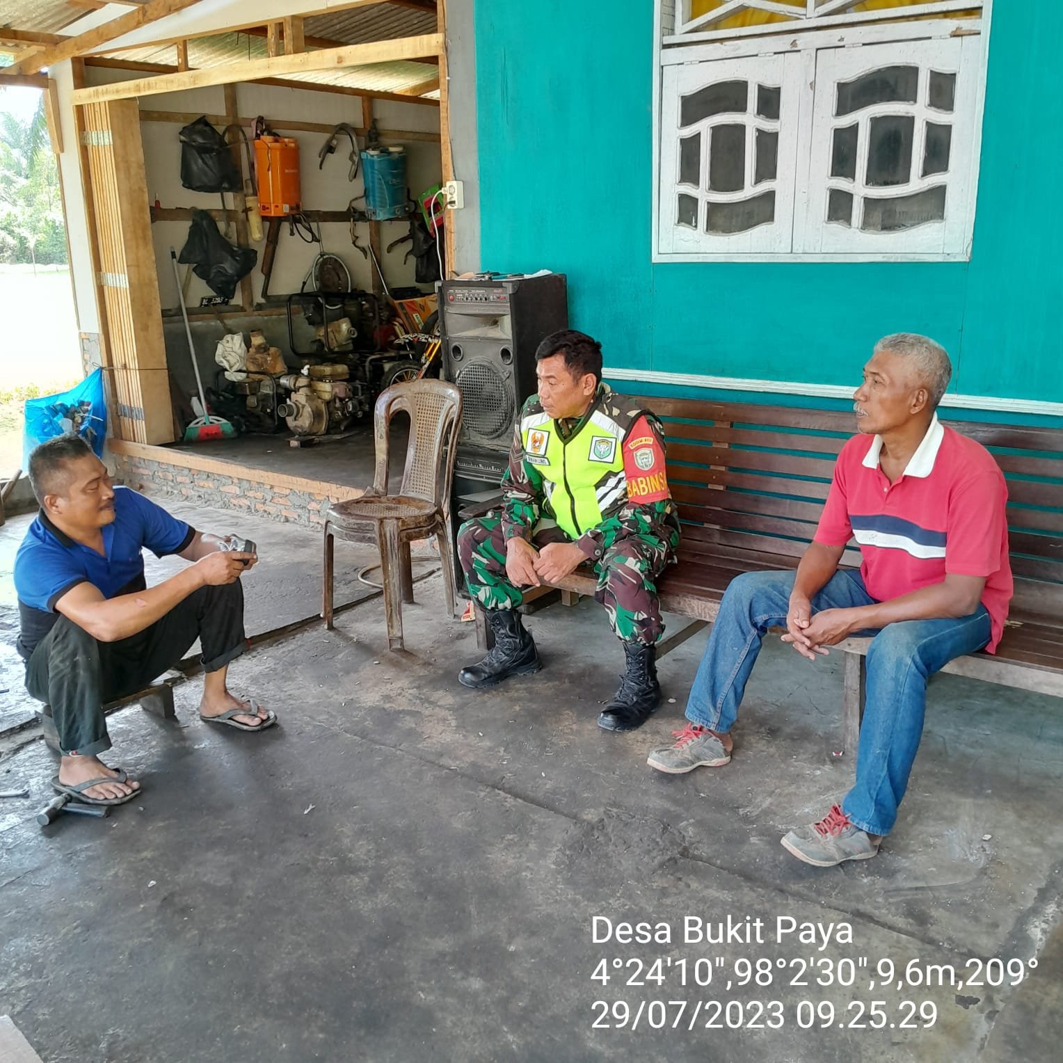 TODAYBERITA.COM | Aceh Tamiang – Dalam rangka pembinaan teritorial di wilayah, Babinsa Koramil 06/Manyak Payed Sertu Irwan Lubis melaksanakan Komunikasi Sosial (Komsos ) bersama masyarakat Desa Bukit Paya, Kecamatan Manyak Payed, Kabupaten Aceh Tamiang. Sabtu (29/07/2023).