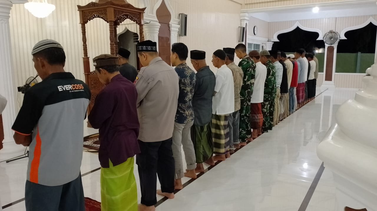 Jelang Pemilu 2024, Personel Polsek Seruway Sholat Subuh Berjamaah Sekaligus Cooling System Pemilu Damai