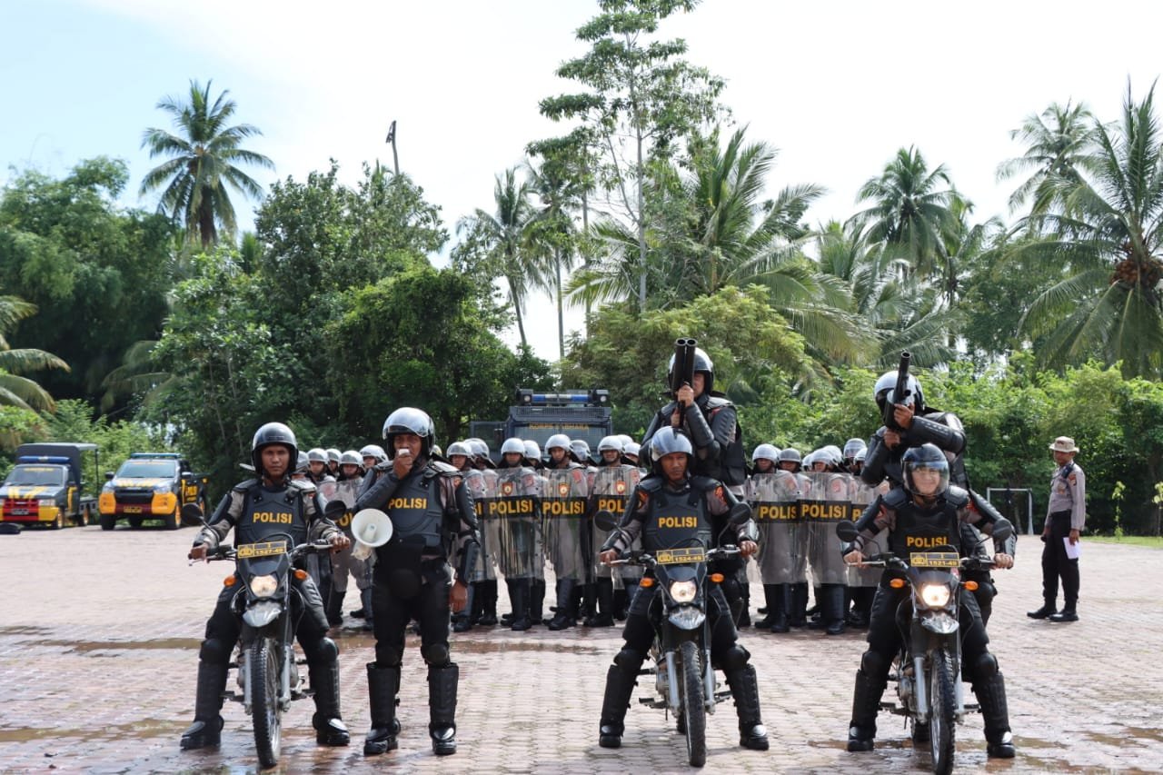 Kapolres Pidie Jaya AKBP Dodon Priyambodo, S.H, S.I.K,M.Si menyampaikan bahwa latihan ini bertujuan untuk memastikan kesiapan personel dalam mengamankan Pemilu 2024.
