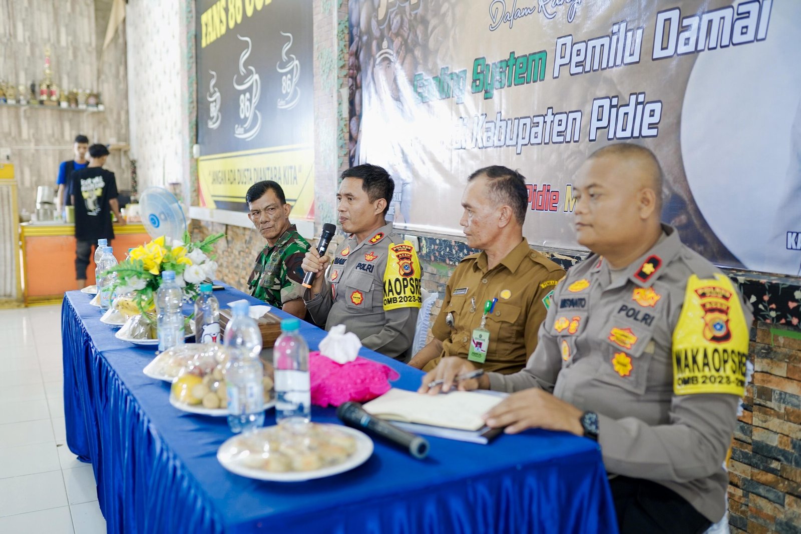 Saat ini sudah mulai tahapan kegiatan pemilu, mari kita saling mengajak untuk kebaikan dalam kehidupan ini, jangan melakukan fitnah ke sana ke mari, kalau ingin menyampaikan visi dan misi kepada masyarakat, sampaikan opini yang benar sehingga tidak menimbulkan perspektif yang salah dari masyarakat ketika berlangsung tahapan pemilu”, imbau Kapolres Pidie.