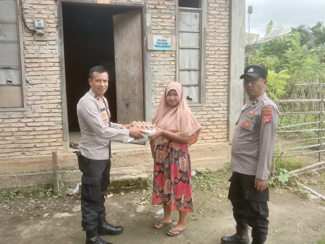TODAYBERITA.COM – Aceh Selatan (Tapaktuan) | Kapolsek Kluet Tengah Polres Aceh Selatan Polda Aceh Ipda Mansur, S.H.,yang didampingi Kanit Binmas Aipda Misbahul Munawar, melalui kegiatan bakti sosial Jumat berkah telah memberikan paket Sembako kepada warga kurang mampu di wilayah hukumnya diantaranya sebanyak 3 (tiga) orang ibu rumah tangga di Desa Lawe Melang, Seorang ibu rumah tangga di Desa Jambo Papan dan Satu orang Ustazah Pesantren Nurul Huda. Bantuan ini berupa beras dan telur. Kegiatan ini dilaksanakan sebagai bagian dari upaya Polsek Kluet Tengah dalam membantu memenuhi kebutuhan hidup warga masyarakat yang membutuhkan.