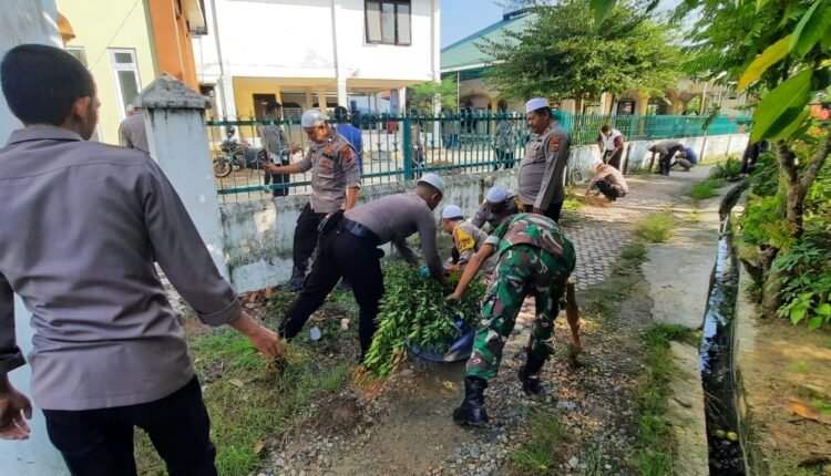 TODAYBERITA.COM | Langsa- Untuk menjaga dan memelihara kebersihan di lingkungan masyarakat, segenap personil Polsek Langsa Polres Langsa menggelar kegiatan Jumat Bersih di Halaman Mesjid Taqwa Gp.PB.Blang Pase Kec.Langsa Kota.